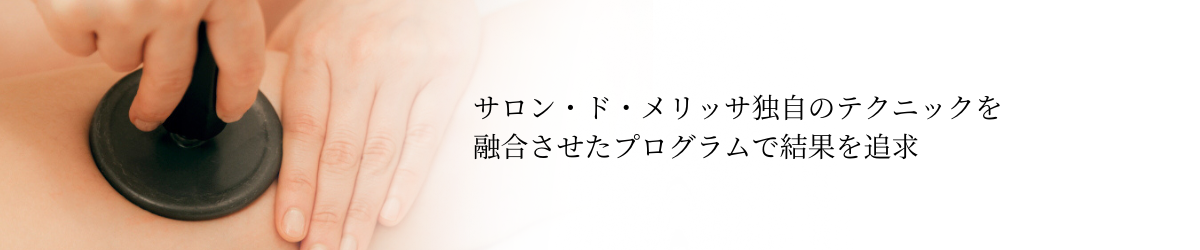 人気のインディバマシン(新機種ER100)をボディに施し、腹部や二の腕、ヒップラインなど気になる局所の余分な脂肪に的を絞ったケアや、慢性的なむくみや冷えなどにもアプローチします。 メリッサでは、リンパの滞りや、セルライトの大きさ、脂肪層の量や疲労の程度など、個々に異なるお身体の状態に合わせて、その当日に最も必要性な方法をカスタマイズします。 精神的なストレスが強いときなどには、インディバよりヘッドマッサージを含めたハンドテクニックに時間をかけることもある、インディバのカスタマイズコースです。 *120minコースをご希望のプレミアム会員様は1,000円引きにてお受けいただけます。